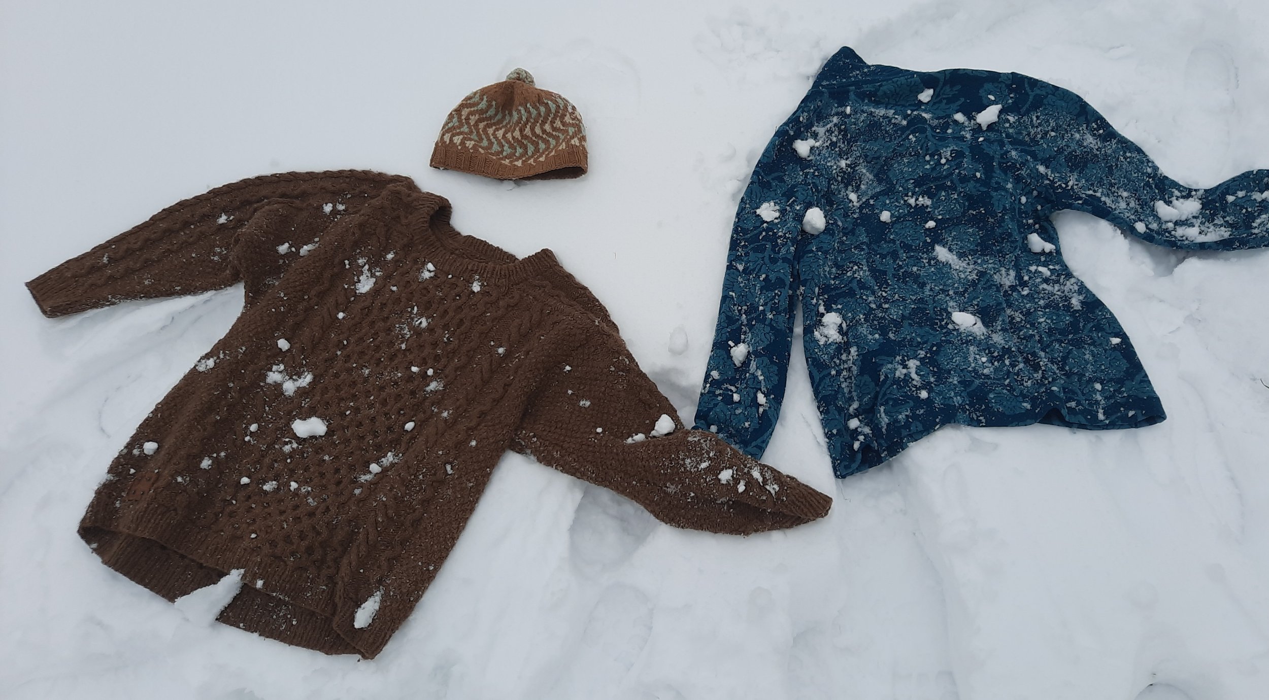 Wollen kleding ligt in de sneeuw